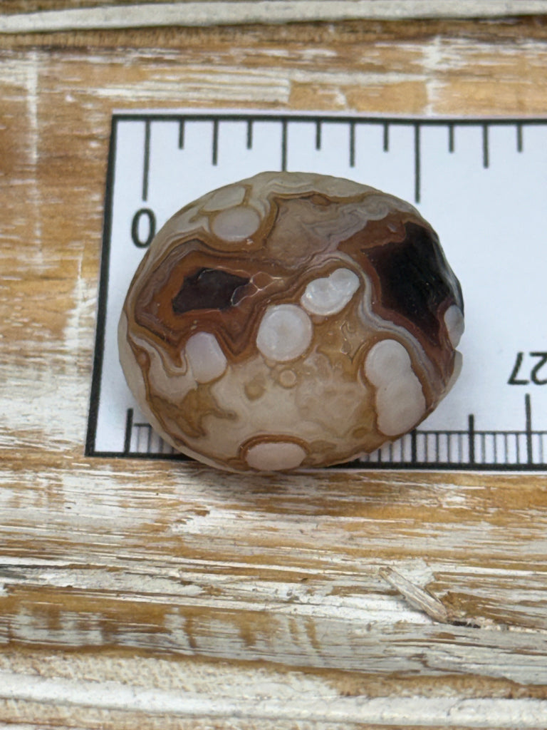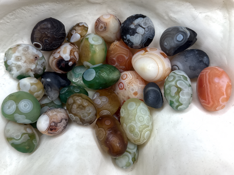 Gobi Desert Agate (often called Gobi Agate or Gobi Desert “Eye” Agate) is a rare, naturally tumbled agate found in the Gobi Desert of Mongolia and northern China. It forms through wind-erosion, giving it smooth surfaces, pastel colors, and unique “eye” or orb patterns.
